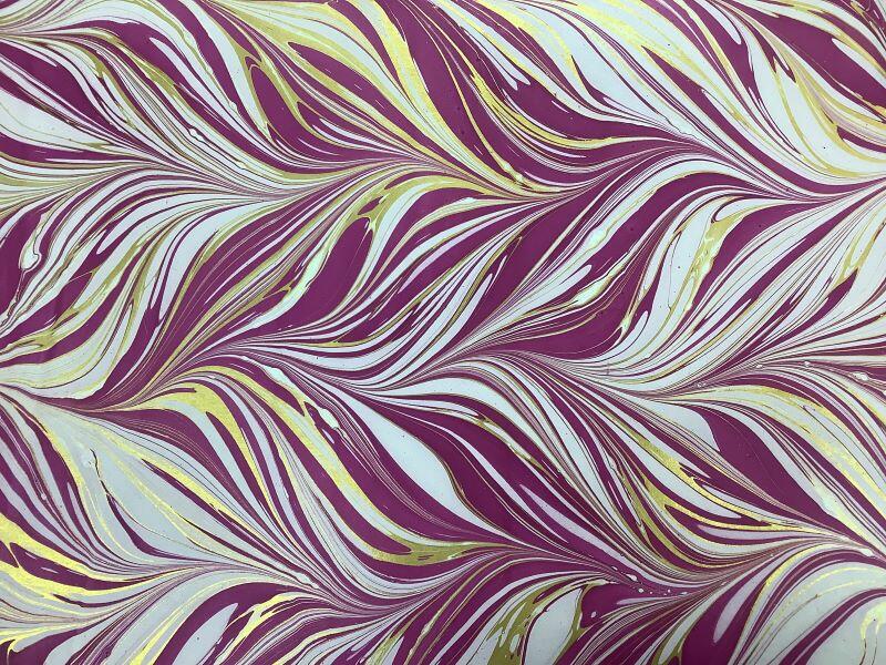 Papier Fantaisie 100% Coton - Papier Marbré Cartonnage FOUTAIN WAVES RASPBERRY