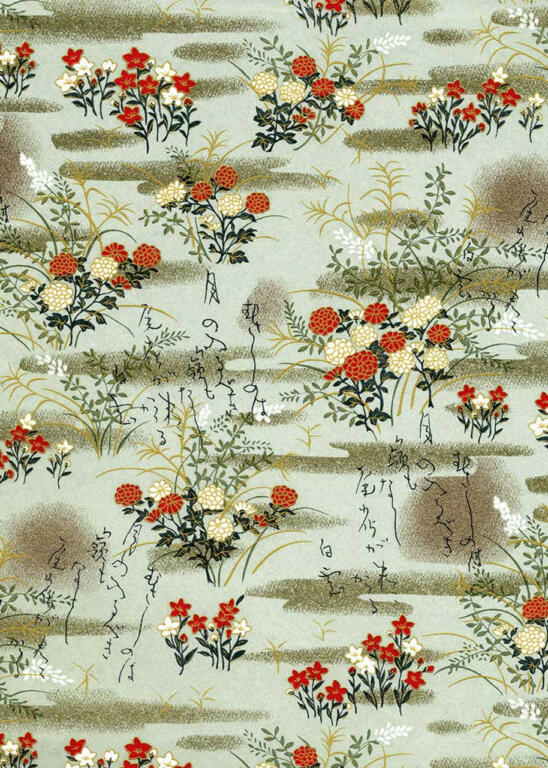 Papier Japonais CHIYOGAMI - Bouquet de Fleurs fond Vert 669
