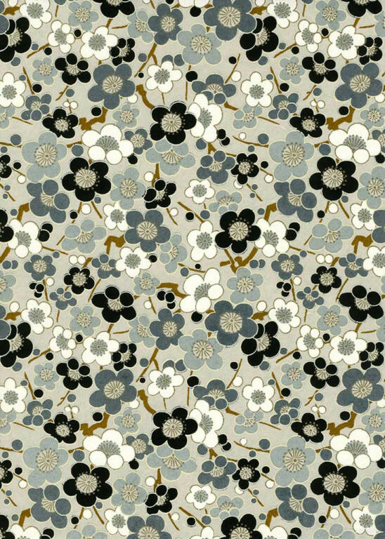Papier Japonais CHIYOGAMI - Fleurs Grises et Noires 772