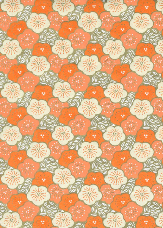 Papier Japonais CHIYOGAMI - Fleurs Orange 1015