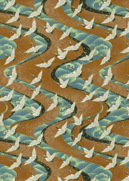 Papier Japonais CHIYOGAMI - Grues Marron et Bleues 926