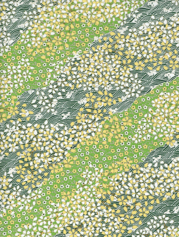 Papier Japonais CHIYOGAMI - Petites Fleurs Vertes 1072