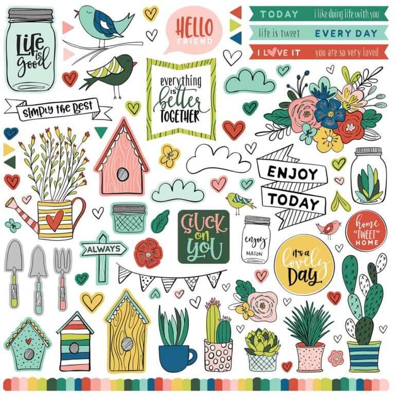 Planche de Stickers 12x12 ( 30x30cm ) coordonnées aux papiers de la même collection.