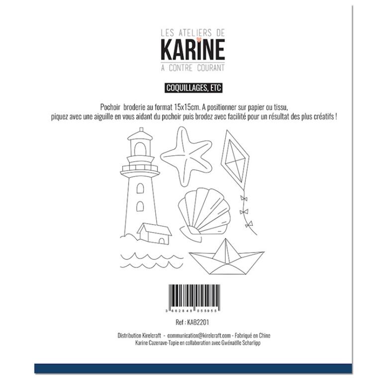 Pochoir Broderie - A CONTRE COURANT - COQUILLAGES, ETC - Les Ateliers de Karine