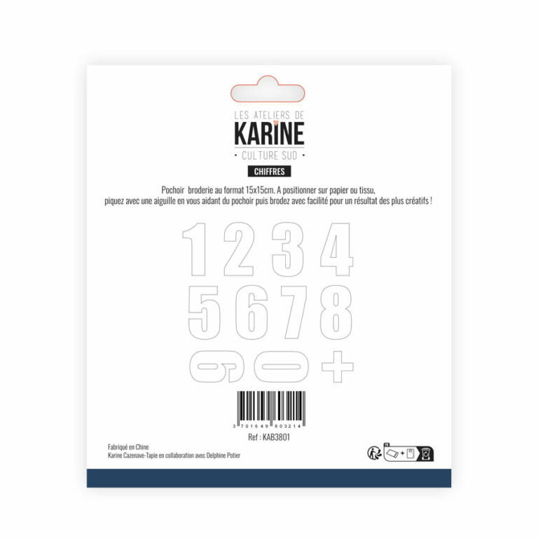 Pochoir Broderie - CULTURE SUD - CHIFFRES - Les Ateliers de Karine