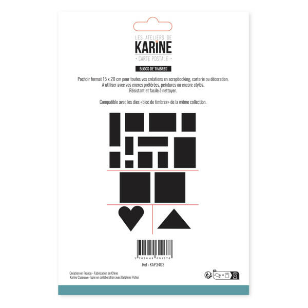 Pochoir - CARTE POSTALE - BLOCS DE TIMBRES - Les Ateliers de Karine