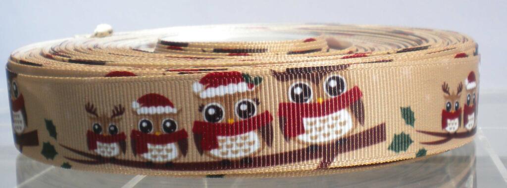 Ruban Imprimé fantaisie - HIBOUX NOEL