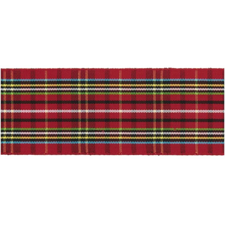 Ruban à Carreaux Rouge avec Bandes Bleu/Jaune/Vert