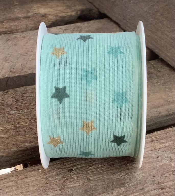 RUBAN NOEL - Ruban Bleu Turquoise Etoile Or ( 40mmx2m)