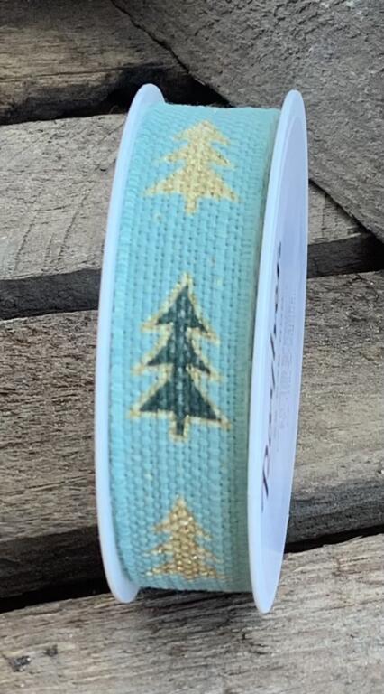 RUBAN NOEL - Ruban Bleu Turquoise Sapin Or ( 15mmx2m)