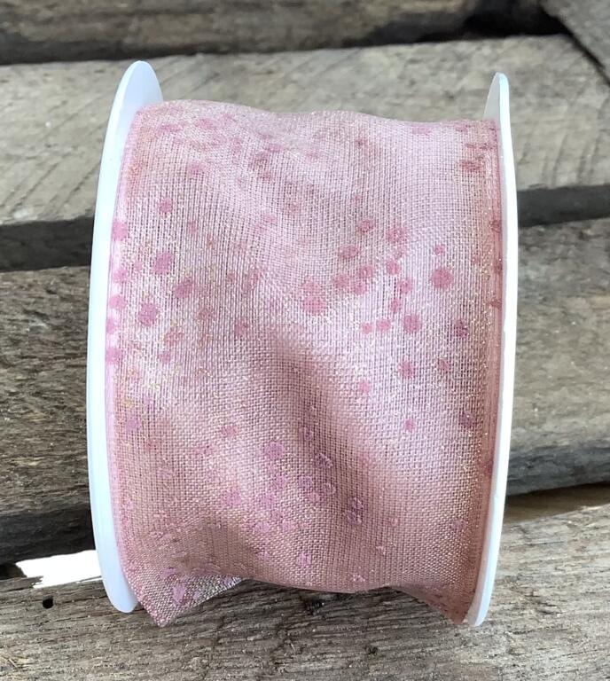 RUBAN NOEL - Ruban Rose Ancien avec Points reflet Or ( 40mmx2m)