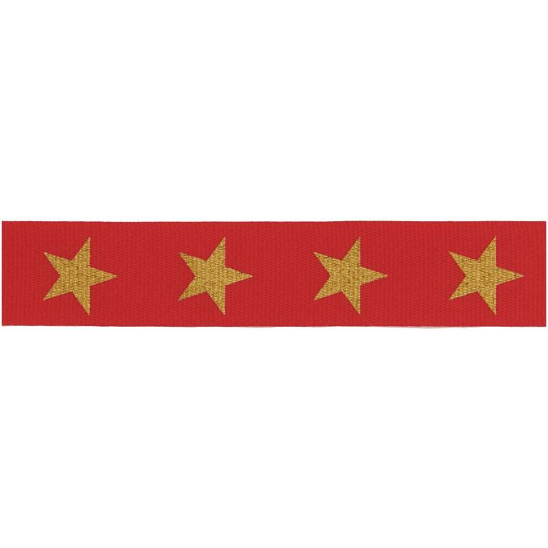 RUBAN NOEL - Ruban Taffeta Rouge avec Etoiles Or (15mmx3m)