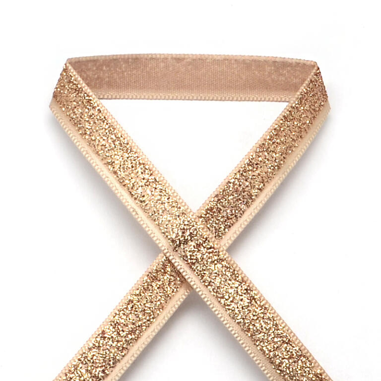 RUBAN SATIN A PAILLETTE - Or Rose 1cm ( vendu au mètre)