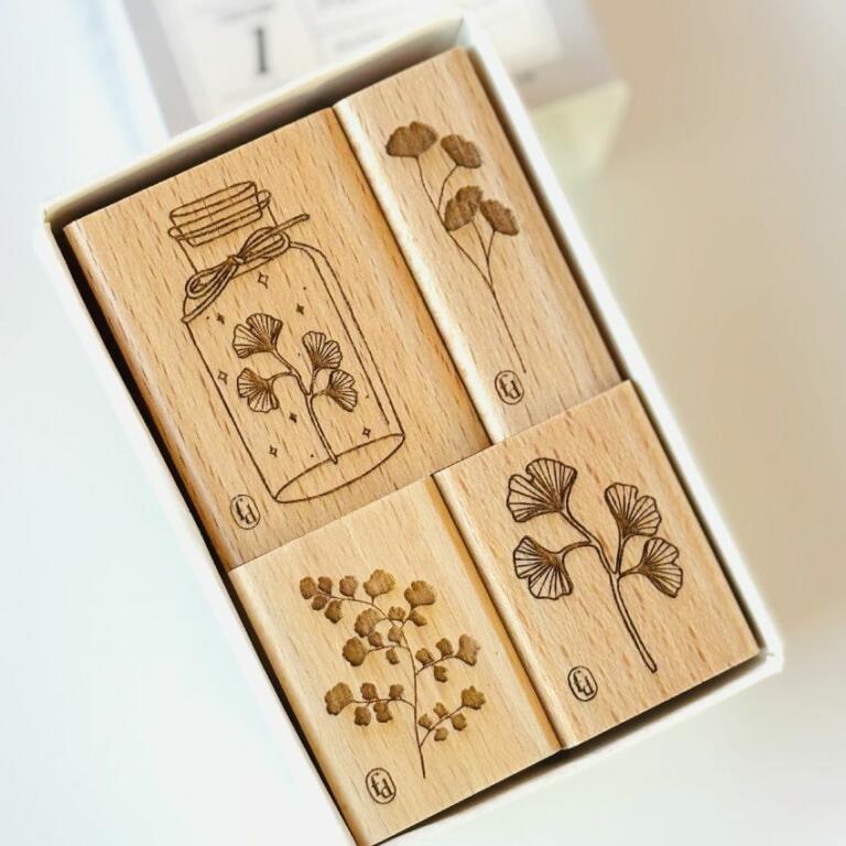 Set Tampon Bois - PRECIEUX GINKGO - Collection GINKGO - Florilèges Design