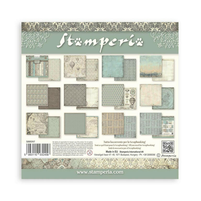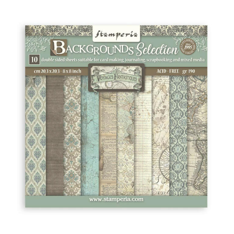 STAMPERIA - Collection VOYAGES FANTASTIQUES BACKGROUNDS 20x20cm - Kit Assortiment de 10 Papiers