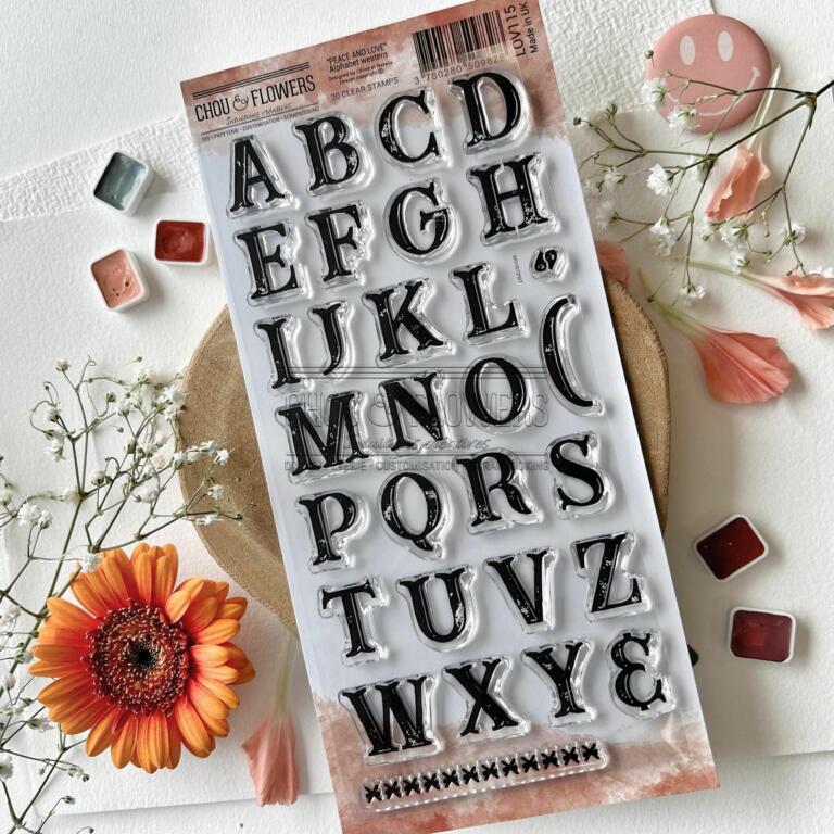 Tampon CLEAR - ALPHABET WESTERN - Collection PEACE AND LOVE - Chou Flowers