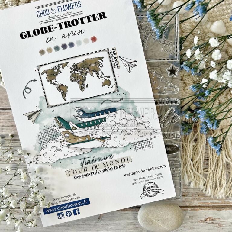 Tampon CLEAR - EN AVION - GLOBE TROTTER - Chou Flowers