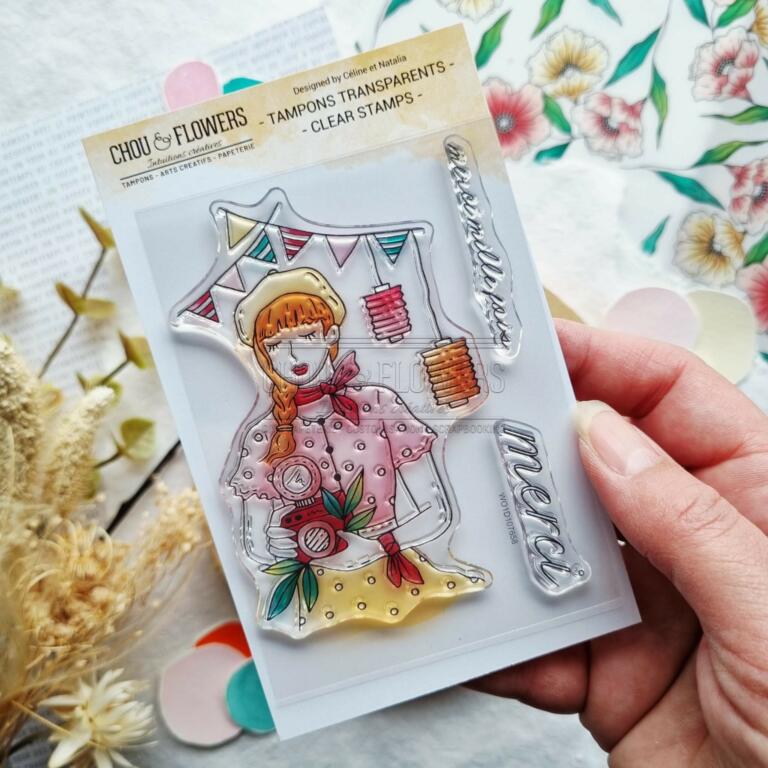 Tampon CLEAR - FILLE GUINGUETTE - Collection MON P'TIT JARDIN - Chou Flowers