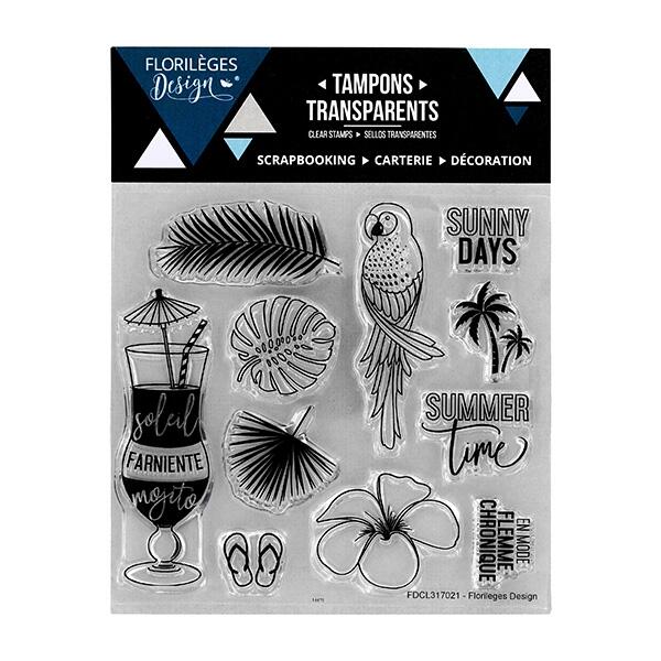 Tampon Clear Florilèges Design - Capsule Summer Paradise Juillet 2017 - Soleil et Mojito