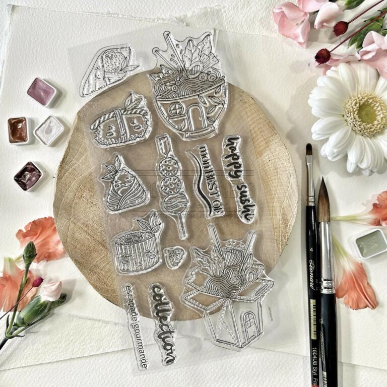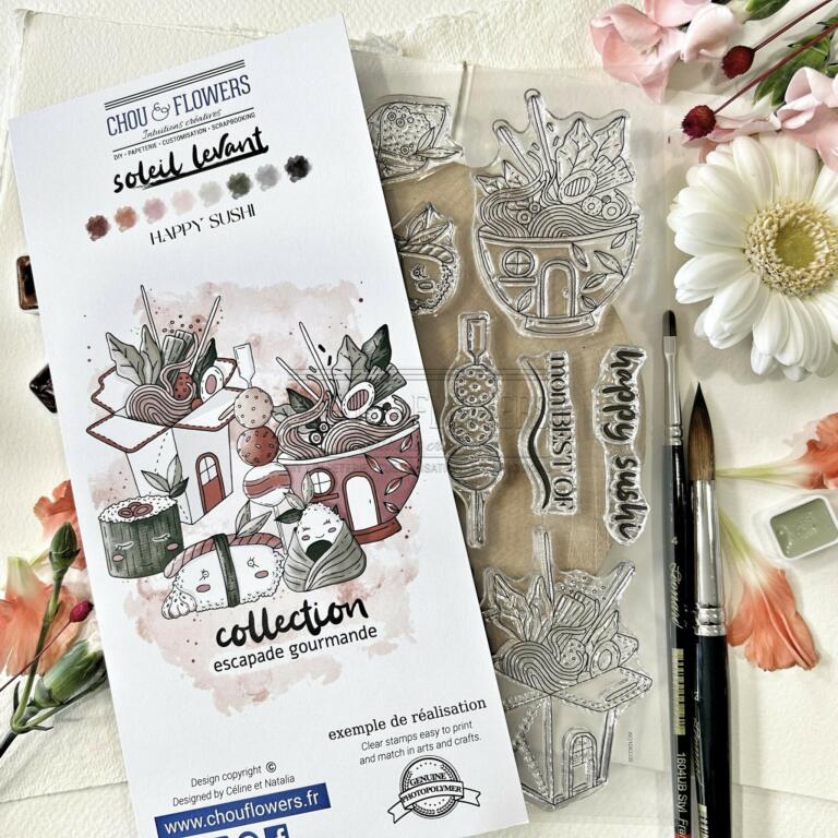 Tampon CLEAR - HAPPY SUSHI- Collection SOLEIL LEVANT - Chou Flowers