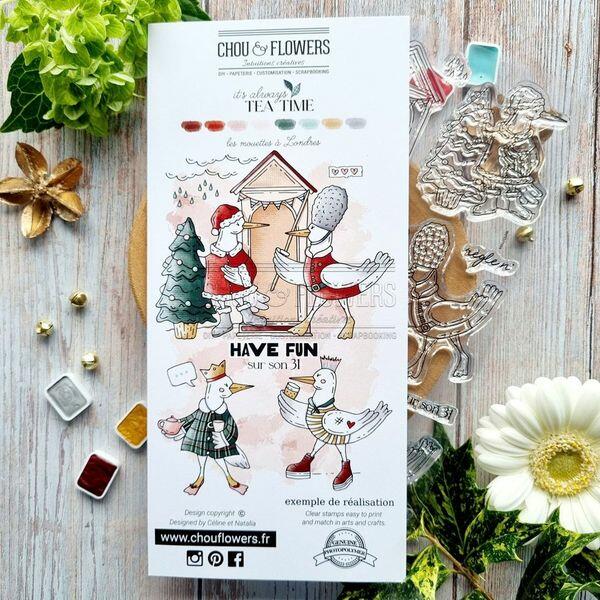 Tampon CLEAR - LES MOUETTES A LONDRES - Collection IT'S ALWAYS TEA TIME - Chou Flowers
