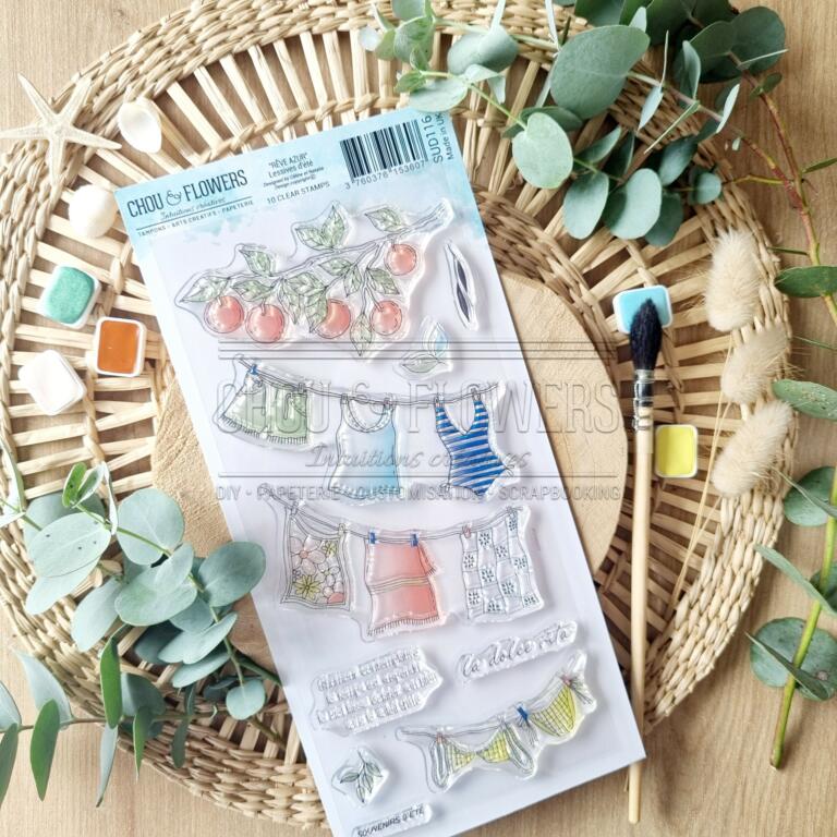 Tampon CLEAR - LESSIVES D'ETE - Collection REVE AZUR - Chou Flowers
