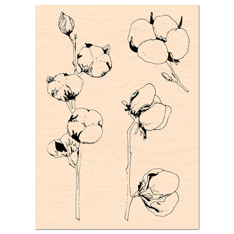 Tampon bois : FLEURS DE COTON des Ateliers de Karine